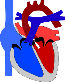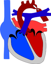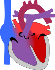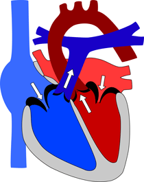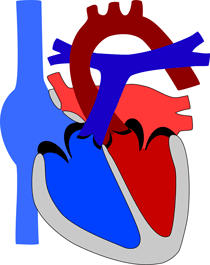 Zum besseren Verständnis finden Sie hier links eine schematische Darstellung eines gesunden Herzens. Die Pfeile markieren hierbei die Flussrichtung des Blutes.