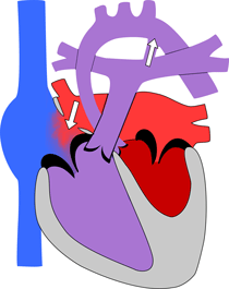 Bei der TGA wird die Aorta aus der rechten und die Lungenschlagader aus der linken Kammer gespeist. Verschließen sich nach der Geburt die beiden Verbindungen zwischen dem Lungen- und dem Körperkreislauf, so wird das Baby lebensbedrohlich krank. Denn es gelangt kein sauerstoffgesättigtes Blut mehr in den Körperkreislauf. Das Blut, das einmal durch den Körper geflossen ist, mündet in die rechte Vorkammer und wird - ohne Sauerstoffzufuhr - wieder in den Körperkreislauf gepumpt. Zur Korrektur wird die arterielle Switch–Operation noch im Neugeborenenalter durchgeführt.